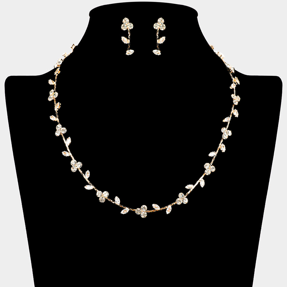 Round Marquise CZ Stone Cluster Flower Vine Necklace