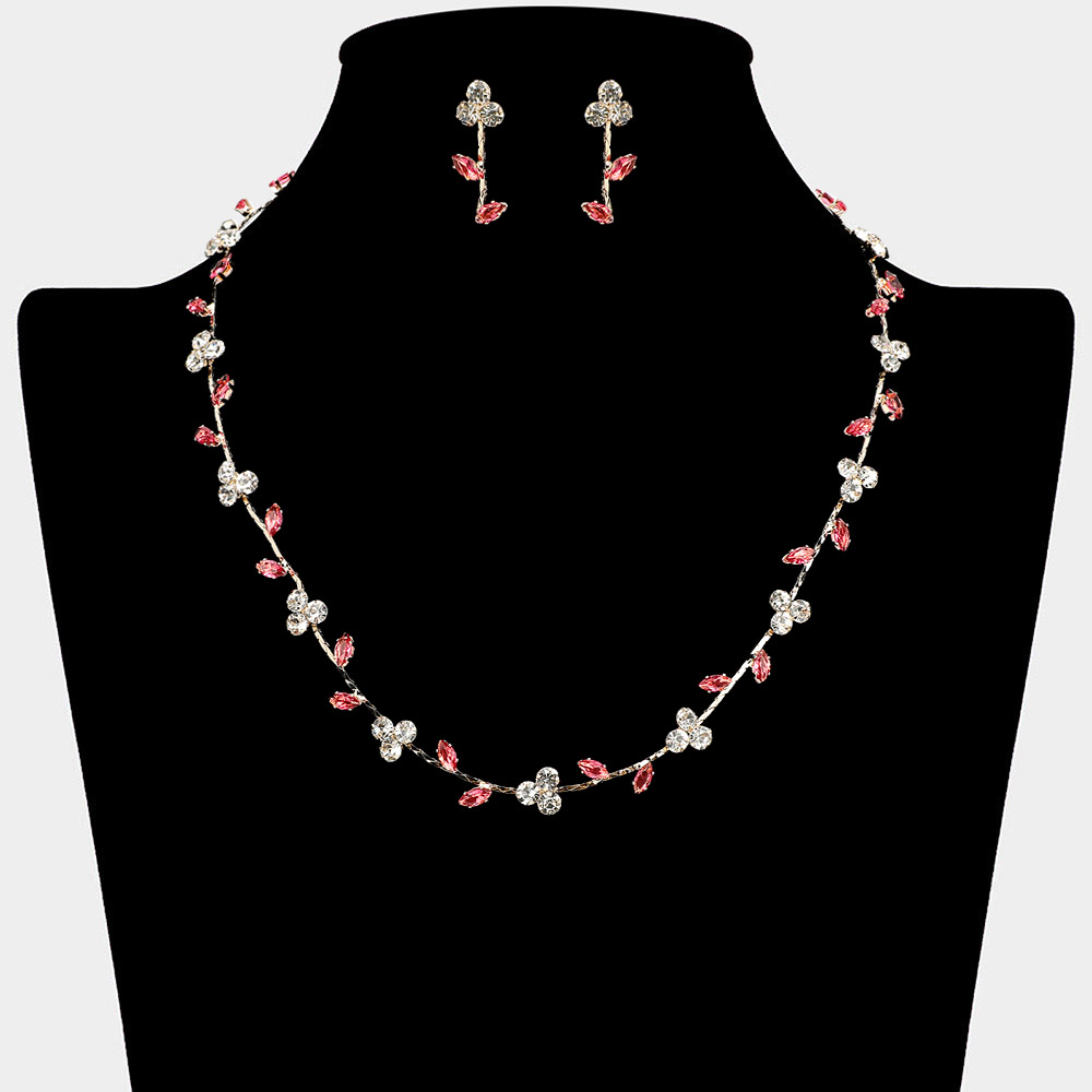 Round Marquise CZ Stone Cluster Flower Vine Necklace
