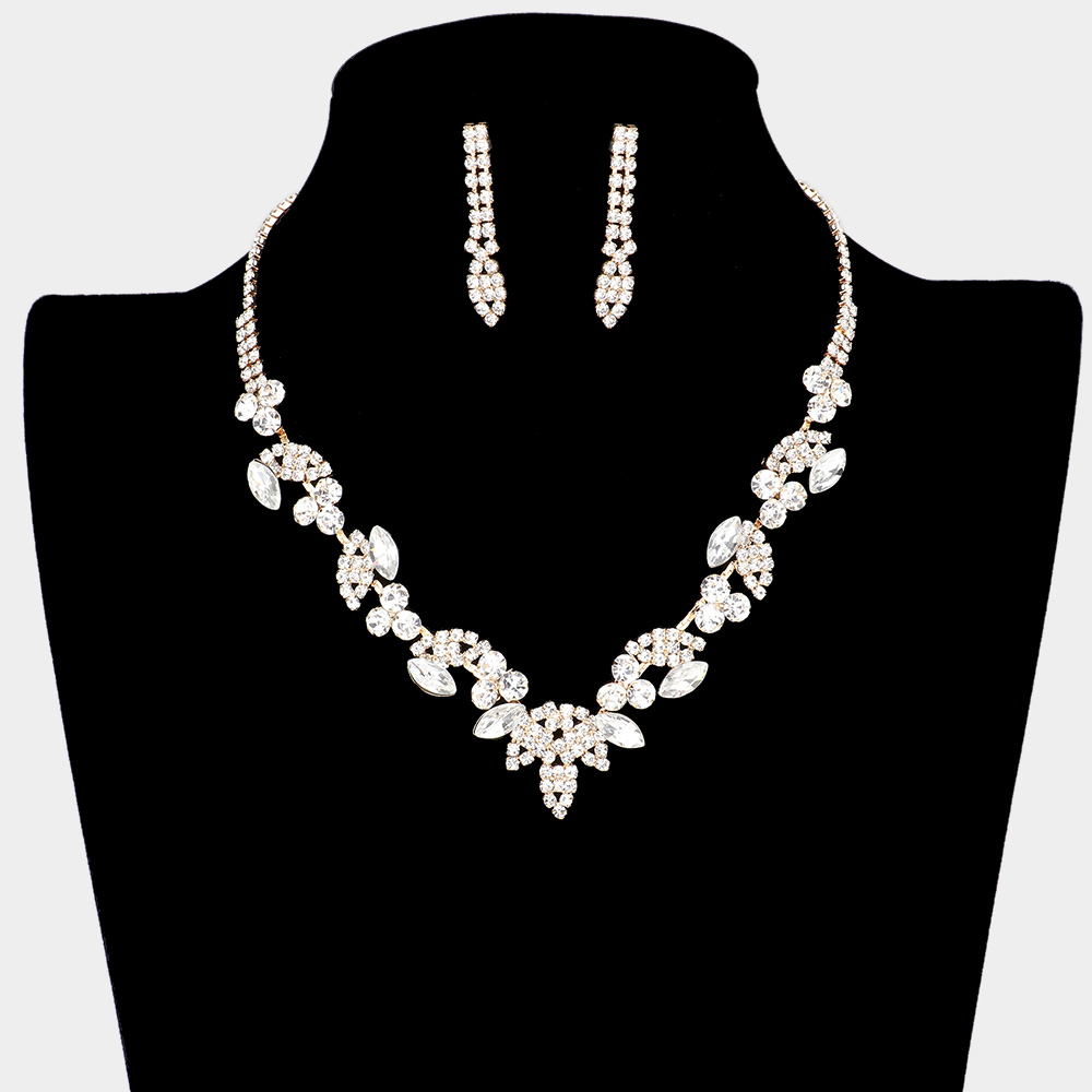 Round Marquise Stone Embellished Rhinestone Pave Necklace