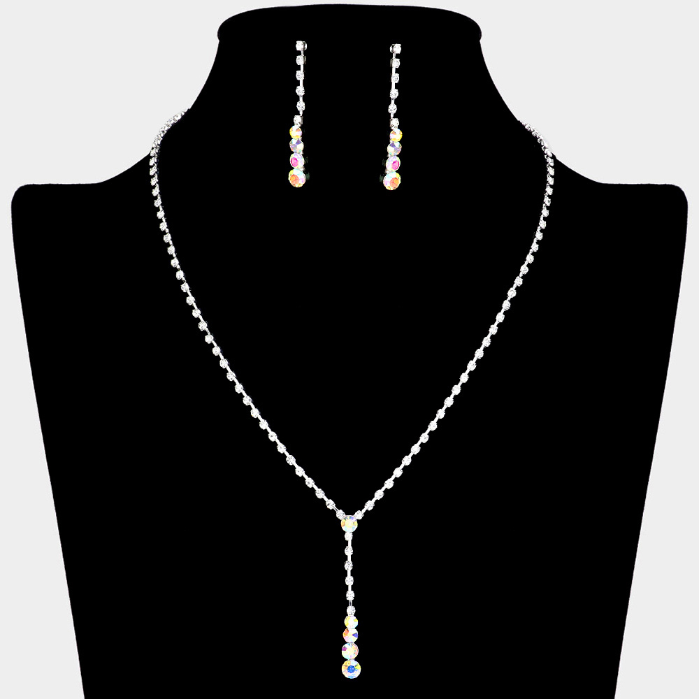 Round Stone Accented Rhinestone Paved Y Necklace