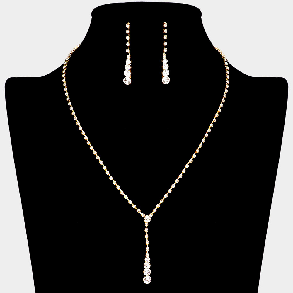 Round Stone Accented Rhinestone Paved Y Necklace