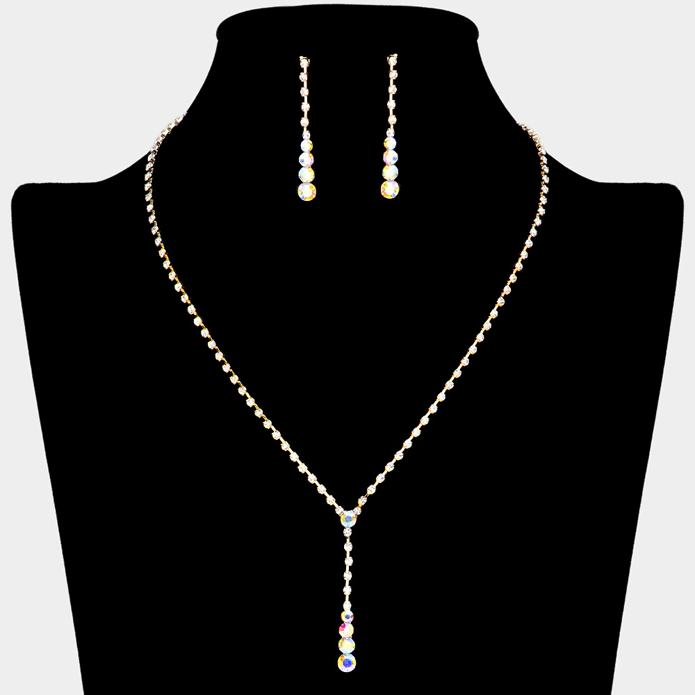 Round Stone Accented Rhinestone Paved Y Necklace