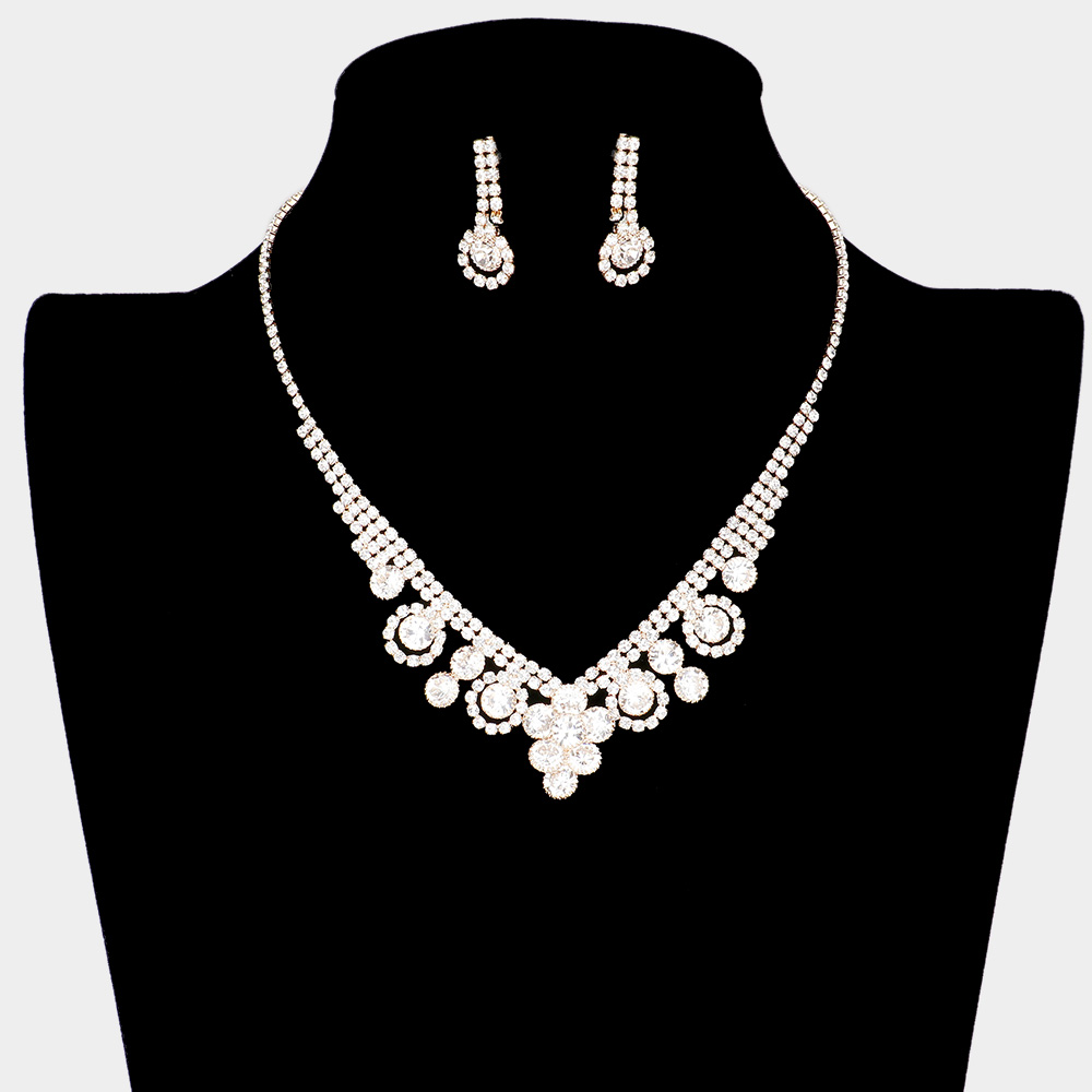 Round Stone Flower Accented Rhinestone Pave Necklace