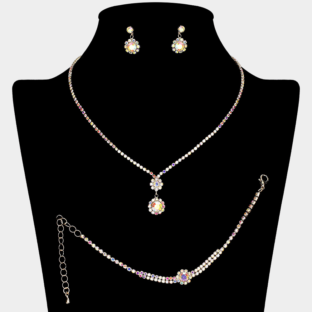Round Stone Pendant Accented Rhinestone Paved Jewelry Set