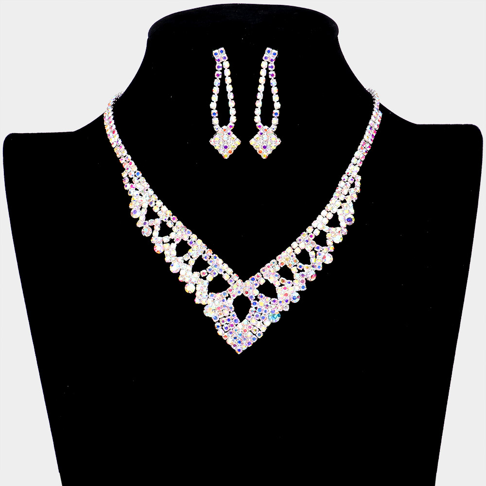Square Stone Pointed Rhinestone Paved Disc Stretch Evening Bracelet