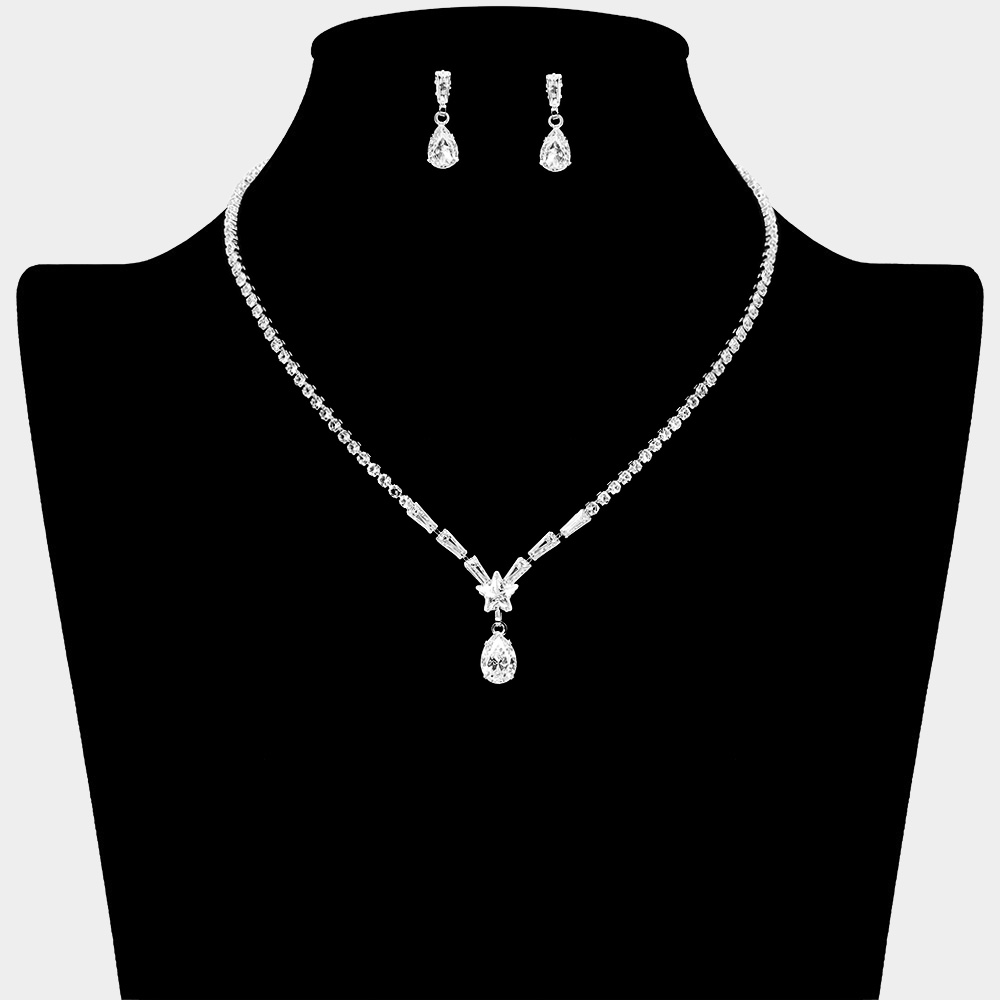 Star CZ Stone Cluster Pointed Teardrop Stone Cluster Pendant Rhinestone Paved Necklace