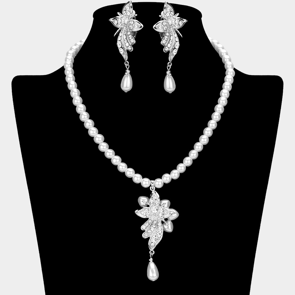 Stone Paved Pearl Pendant Necklace