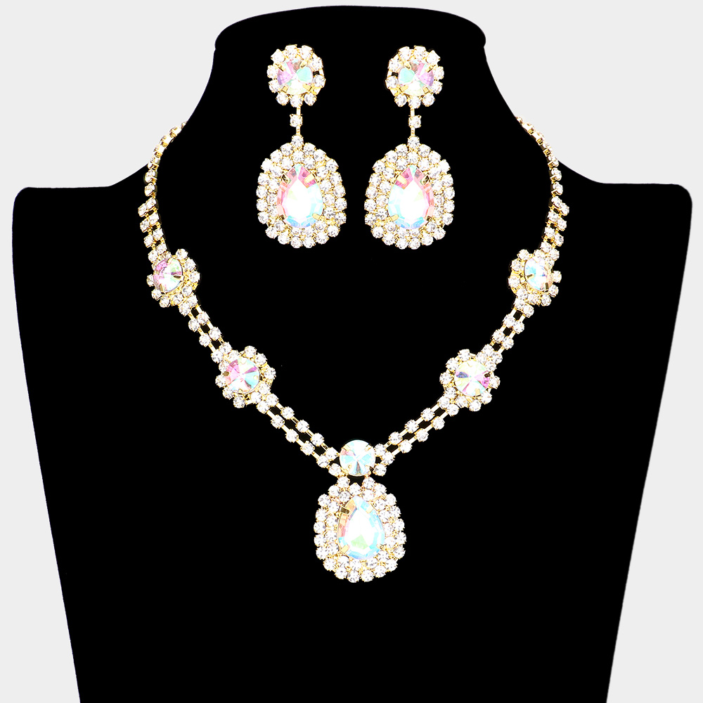 Teardrop Stone Pendant Pointed Rhinestone Paved Necklace