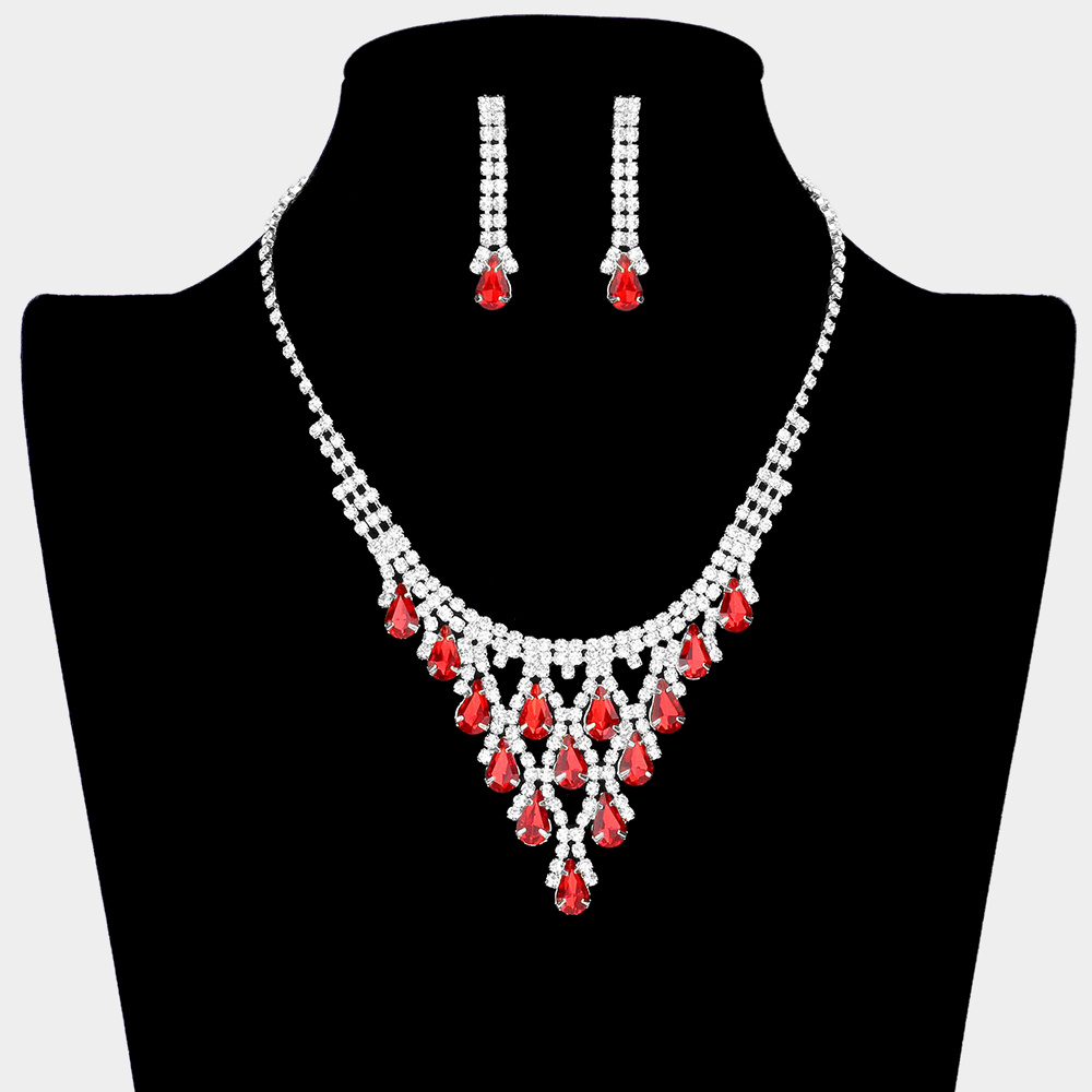 Teardrop Cluster Rhinestone Necklace