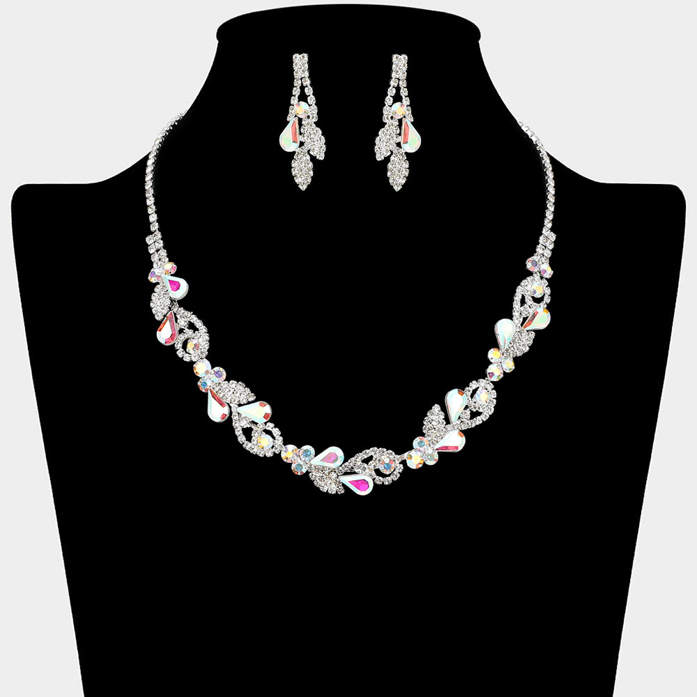 • Elevate your elegance with this leaf cluster necklace and earring set. Designed with intricate details and shimmering stones, it offers a graceful blend of sophistication and sparkle. Ideal for weddings, evening events, and celebrations, it adds a radiant finishing touch to any ensemble.