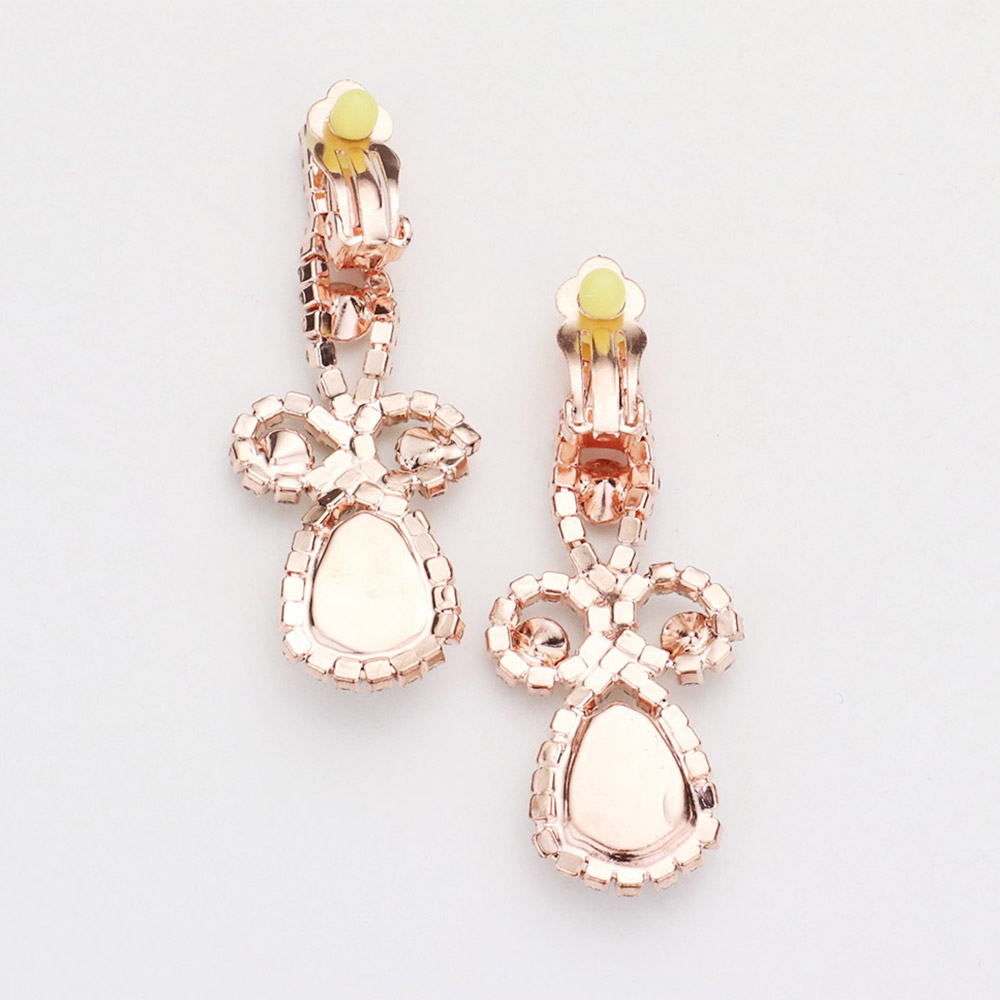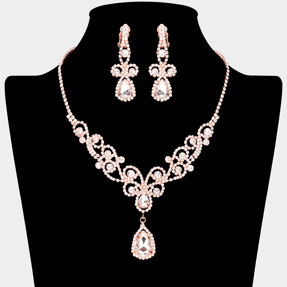 Teardrop Crystal Rhinestone Vine Drop Collar Necklace Clip on Earring Set