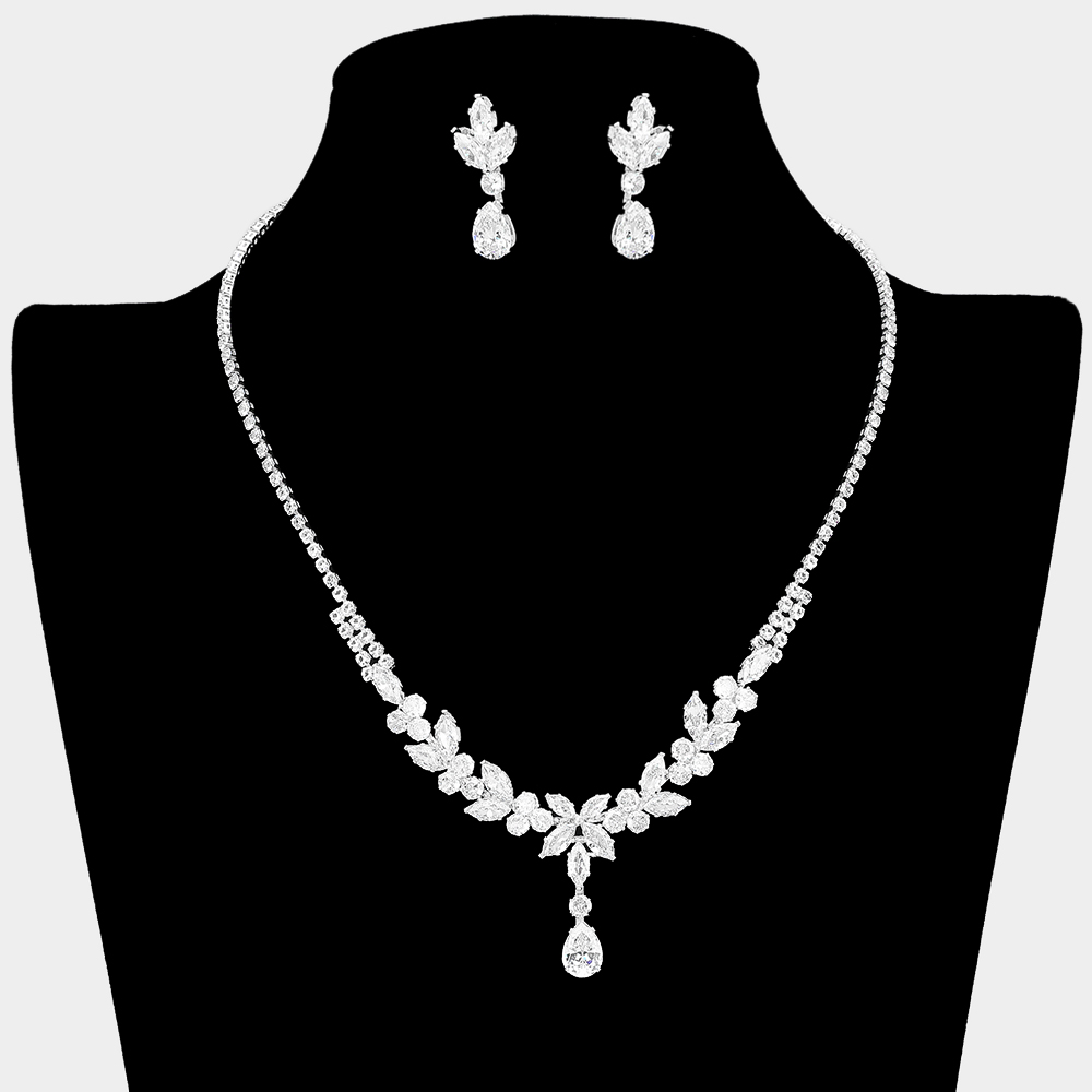 • This radiant jewelry set showcases a refined floral design with shimmering accents and a graceful drop pendant. Ideal for weddings, parties, and elegant celebrations, it adds timeless sophistication and eye-catching brilliance to any special occasion look.