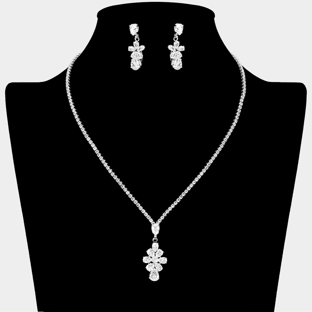 Teardrop CZ Stone Cluster Embellished Pendant Rhinestone Paved Necklace
