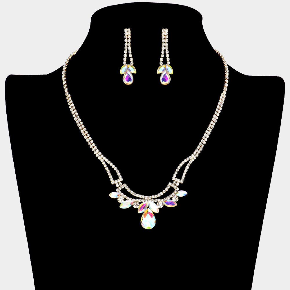 Details • Necklace Size : 15" + 4" L • Decor Size : 0.8" L • Earring Size : 1.4" L • Elevate your look with this rhinestone teardrop necklace and matching earrings set. Featuring shimmering accents and a delicate drop design, this jewelry set is perfect for weddings, proms, and elegant occasions, adding a dazzling touch of sparkle to complete your special event outfit. • Lead and Nickel Compliant
