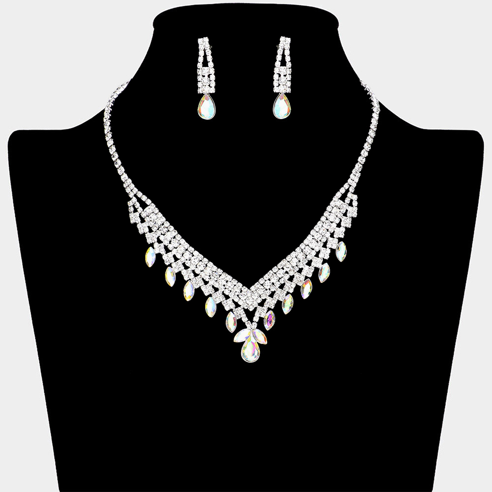 Teardrop Marquise Stone Pointed Rhinestone Paved Necklace