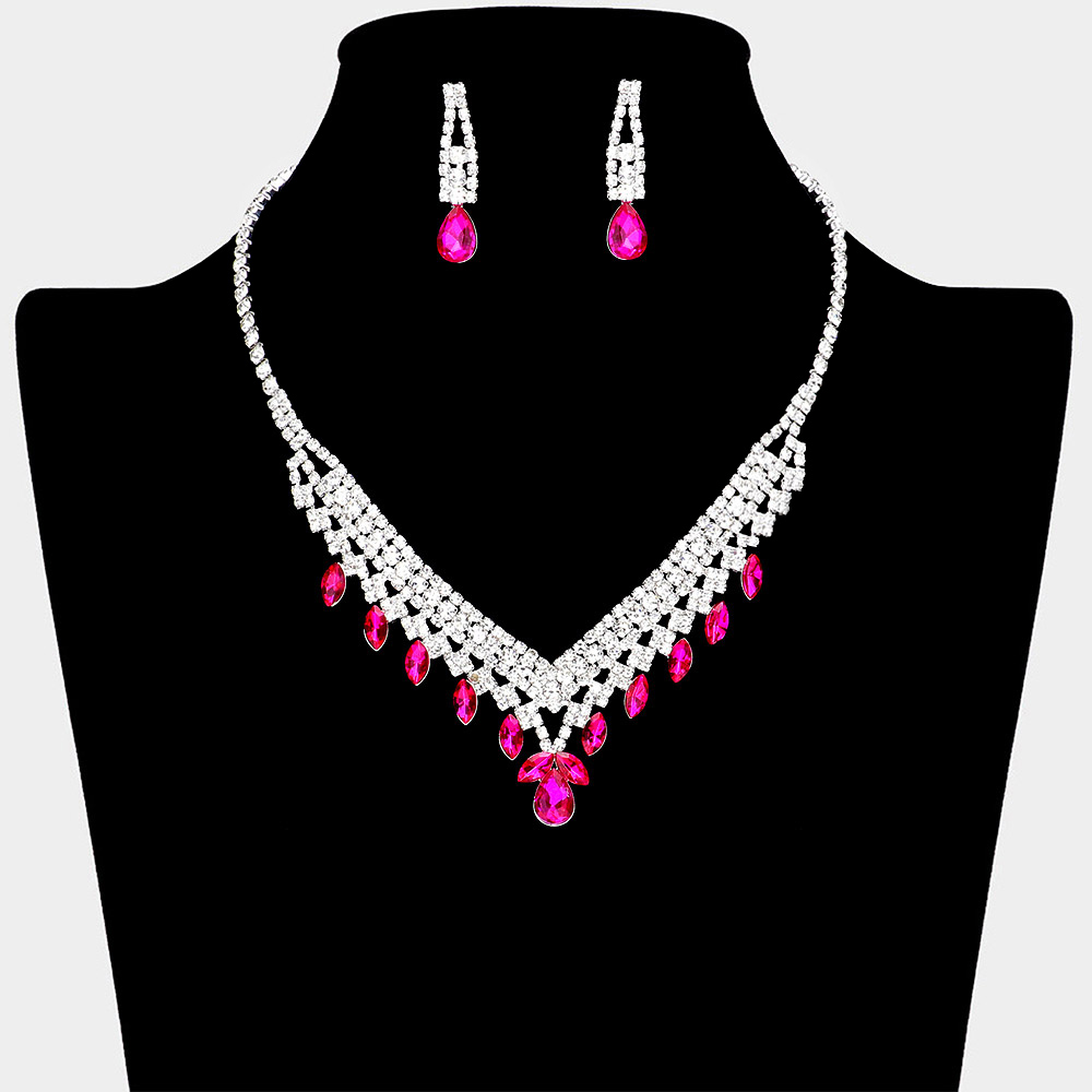 Teardrop Marquise Stone Pointed Rhinestone Paved Necklace
