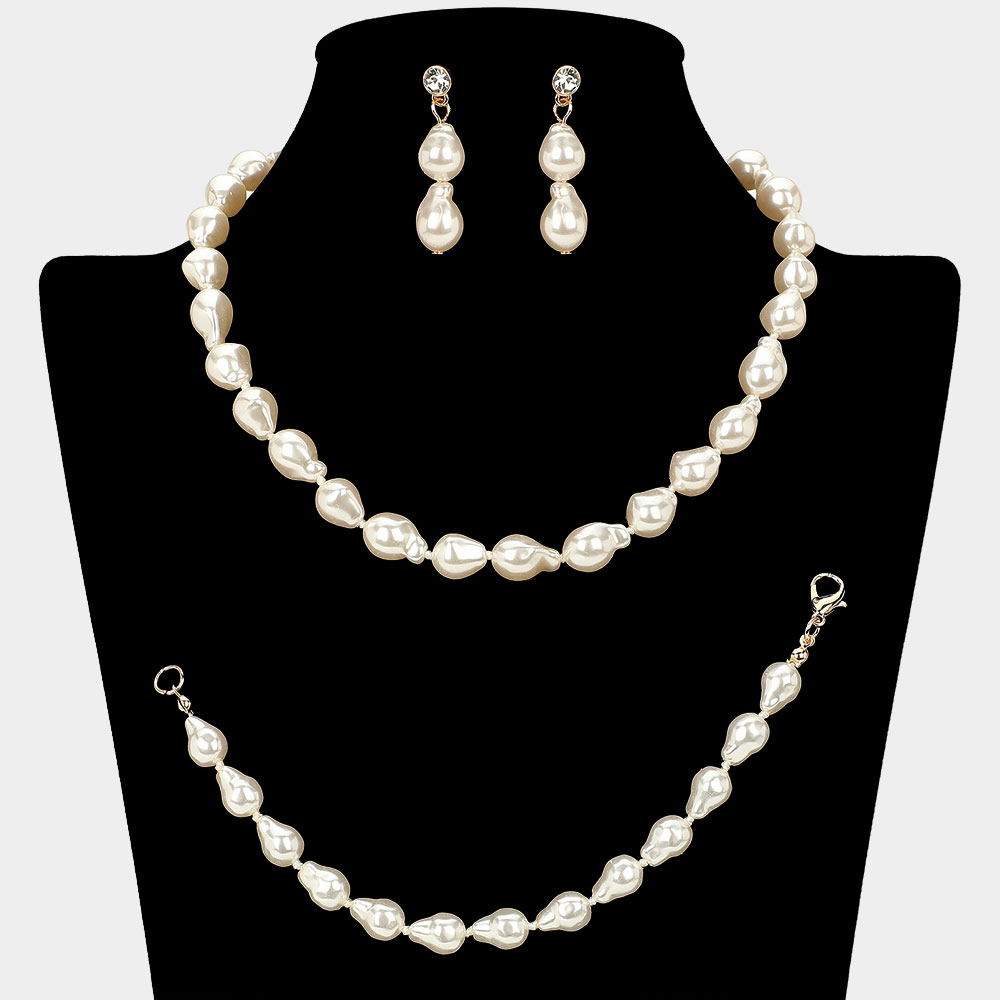3PCS - Pearl Beaded Metal Cable Multi Layered Stretch Bracelets