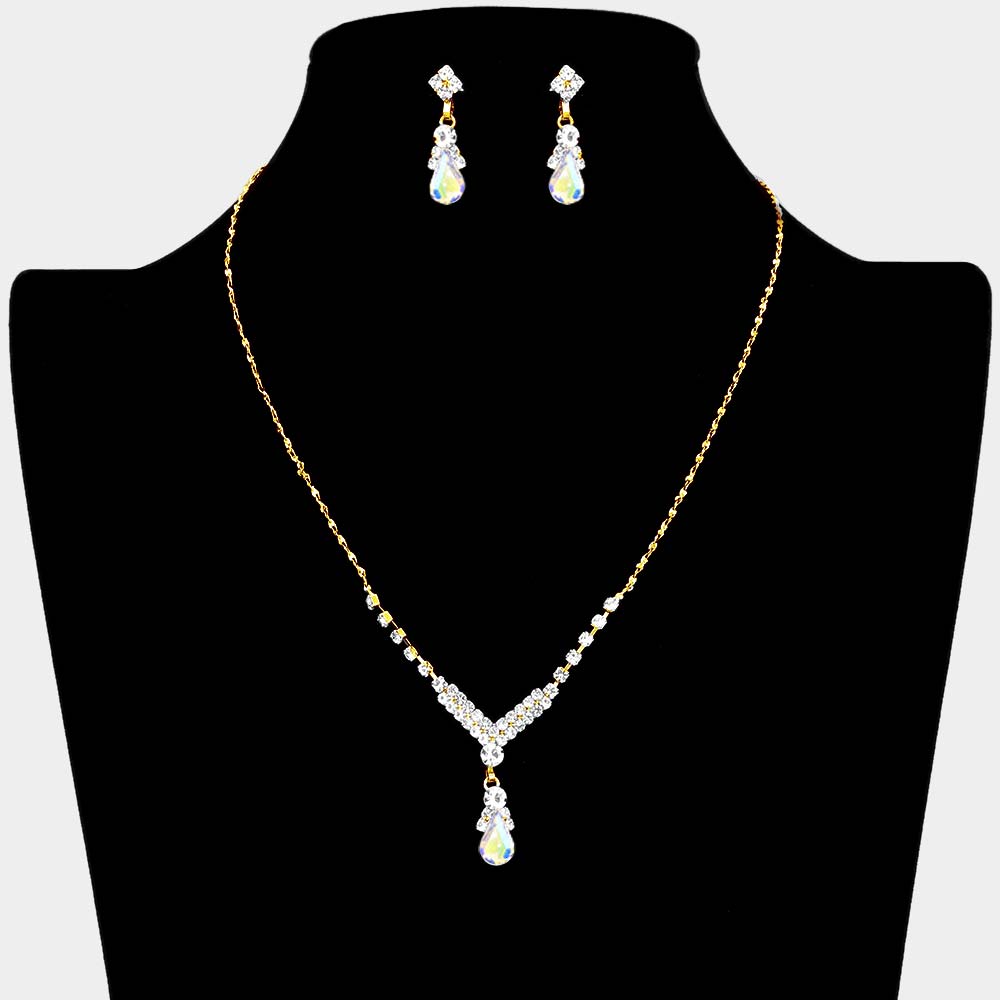Pave Crystal Rhinestone Teardrop Dangle Necklace