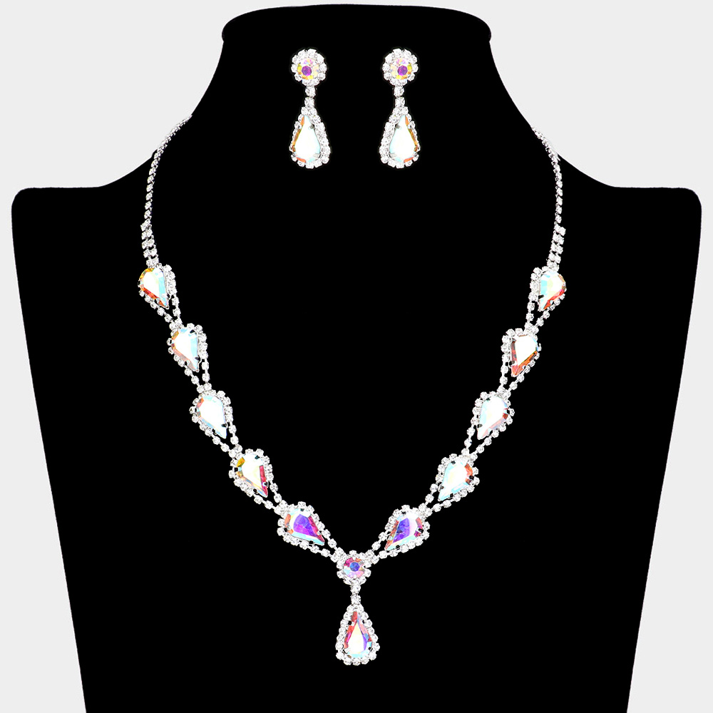 Bold Teardrop Stone Cluster Statement Evening Necklace