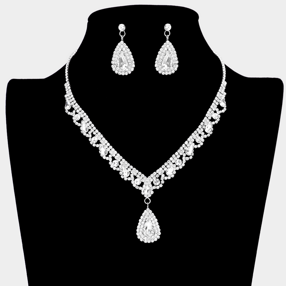 Teardrop Pendant Accent Rhinestone Paved Jewelry Set