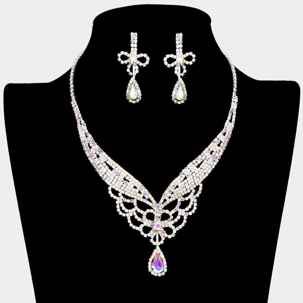 Round Stone Flower Accented Rhinestone Pave Necklace