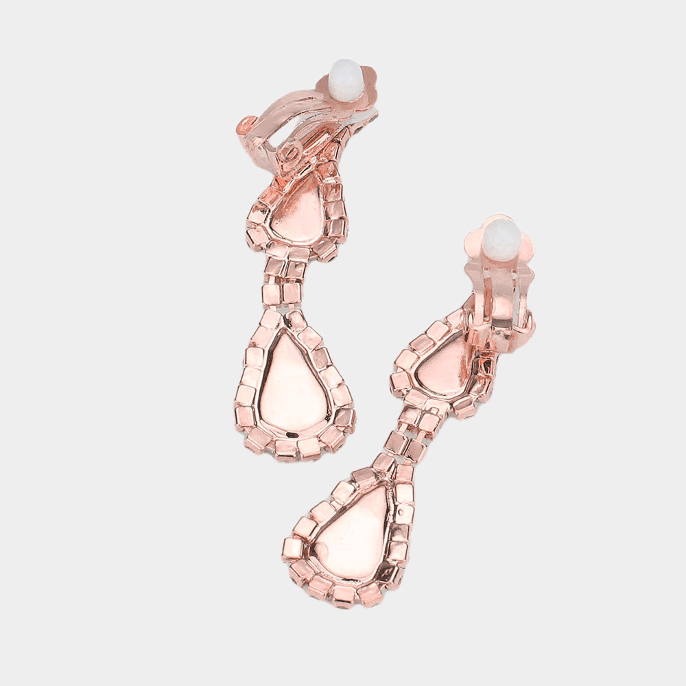 Teardrop Stone Accented Rhinestone Pave Necklace Clip on Earring Set
