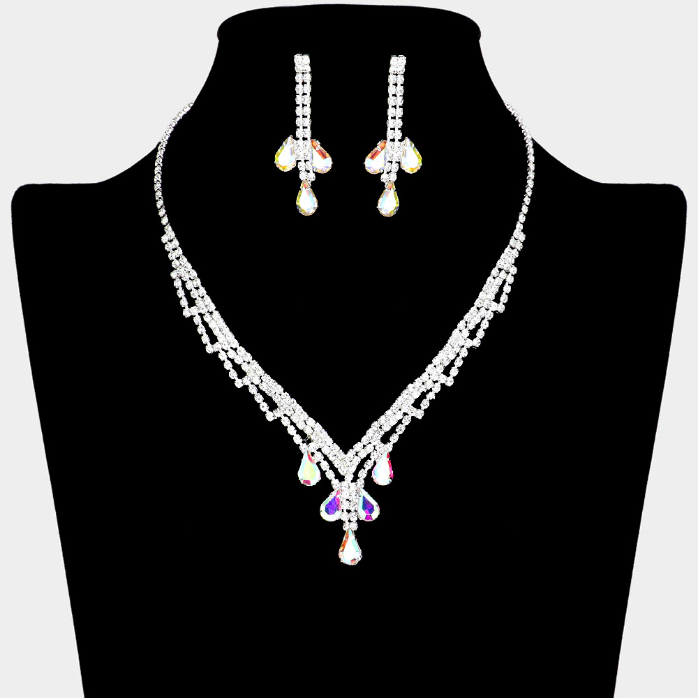 Teardrop Stone Accented Rhinestone Paved Necklace