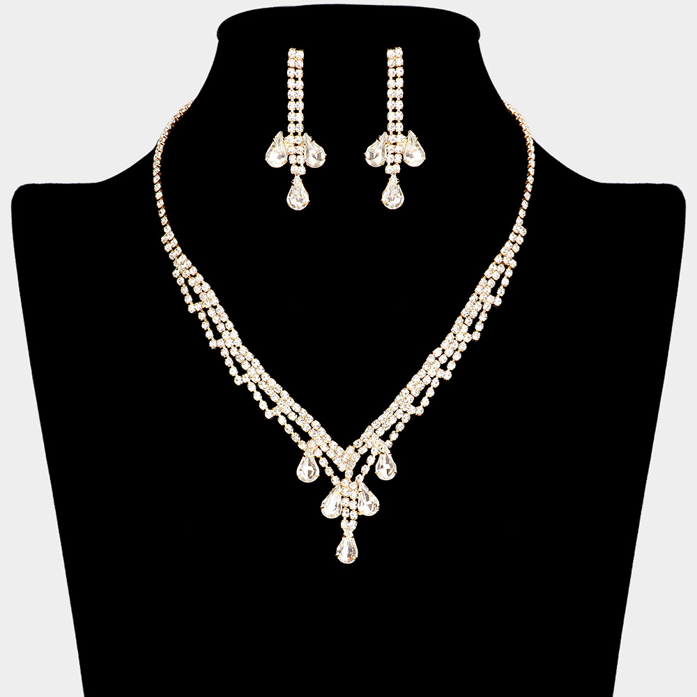 Teardrop Stone Accented Rhinestone Paved Necklace