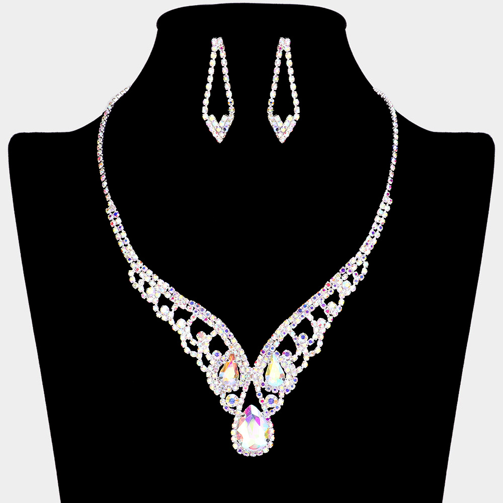 Teardrop Stone Accented Rhinestone Paved V Shape Necklace