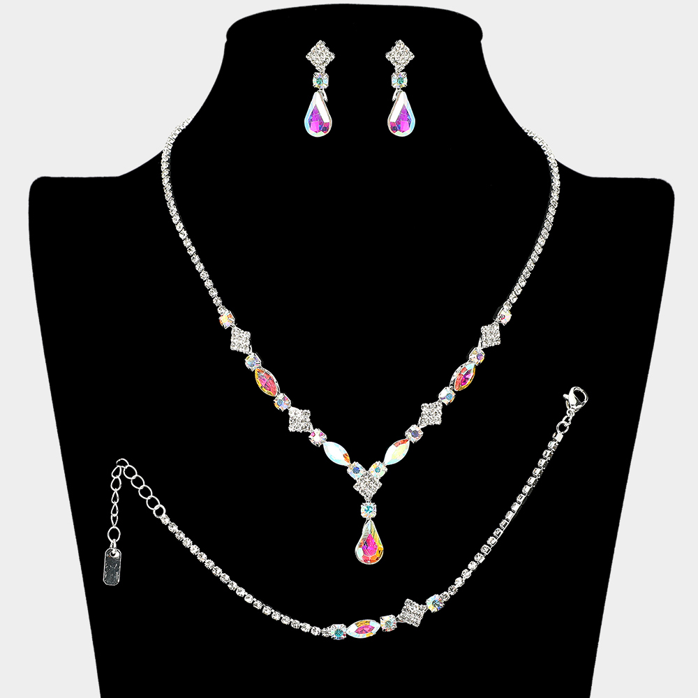 Teardrop Stone Cluster Accent Oval Square Stone Cluster Rhinestone Paved Jewelry Set