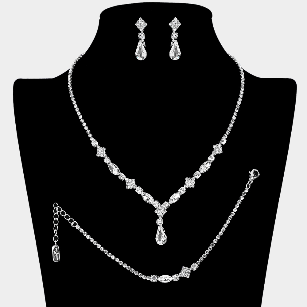 Teardrop Stone Cluster Accent Oval Square Stone Cluster Rhinestone Paved Jewelry Set