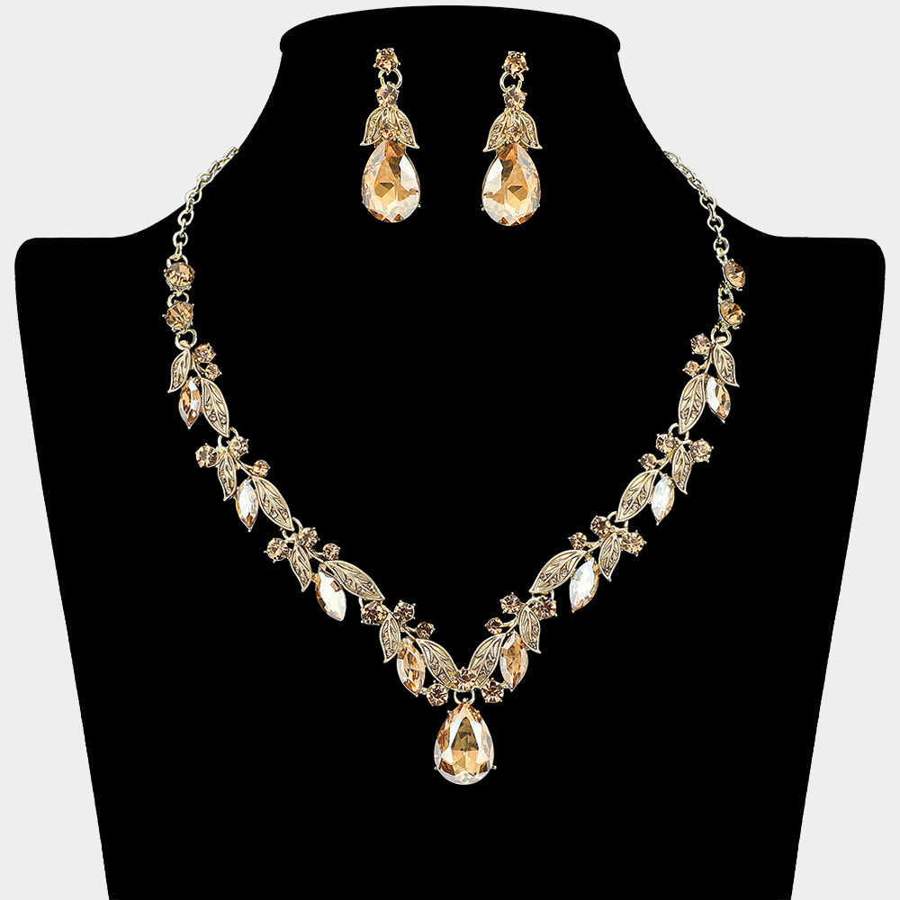 • Chic jewelry set featuring a teardrop pendant necklace with matching earrings, perfect for weddings, proms, and evening occasions. Designed to add refined sparkle and sophistication to bridal or formal attire.