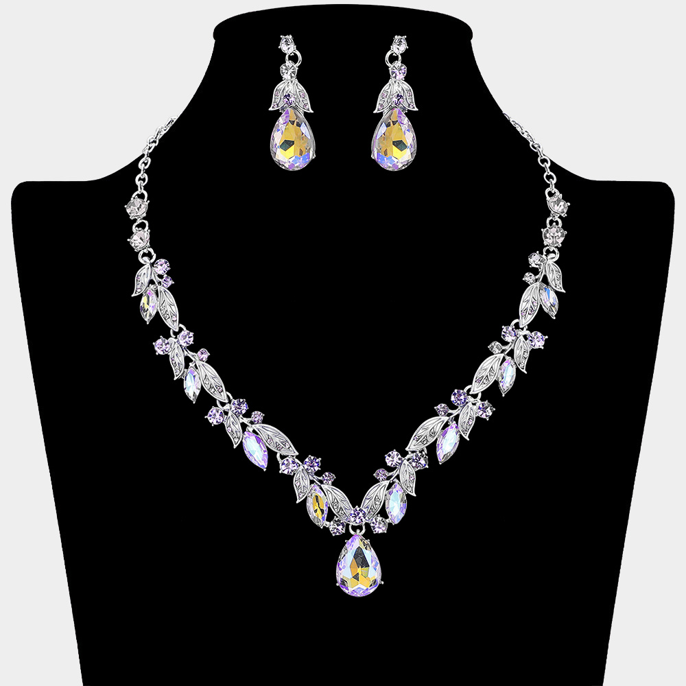 • Chic jewelry set featuring a teardrop pendant necklace with matching earrings, perfect for weddings, proms, and evening occasions. Designed to add refined sparkle and sophistication to bridal or formal attire.