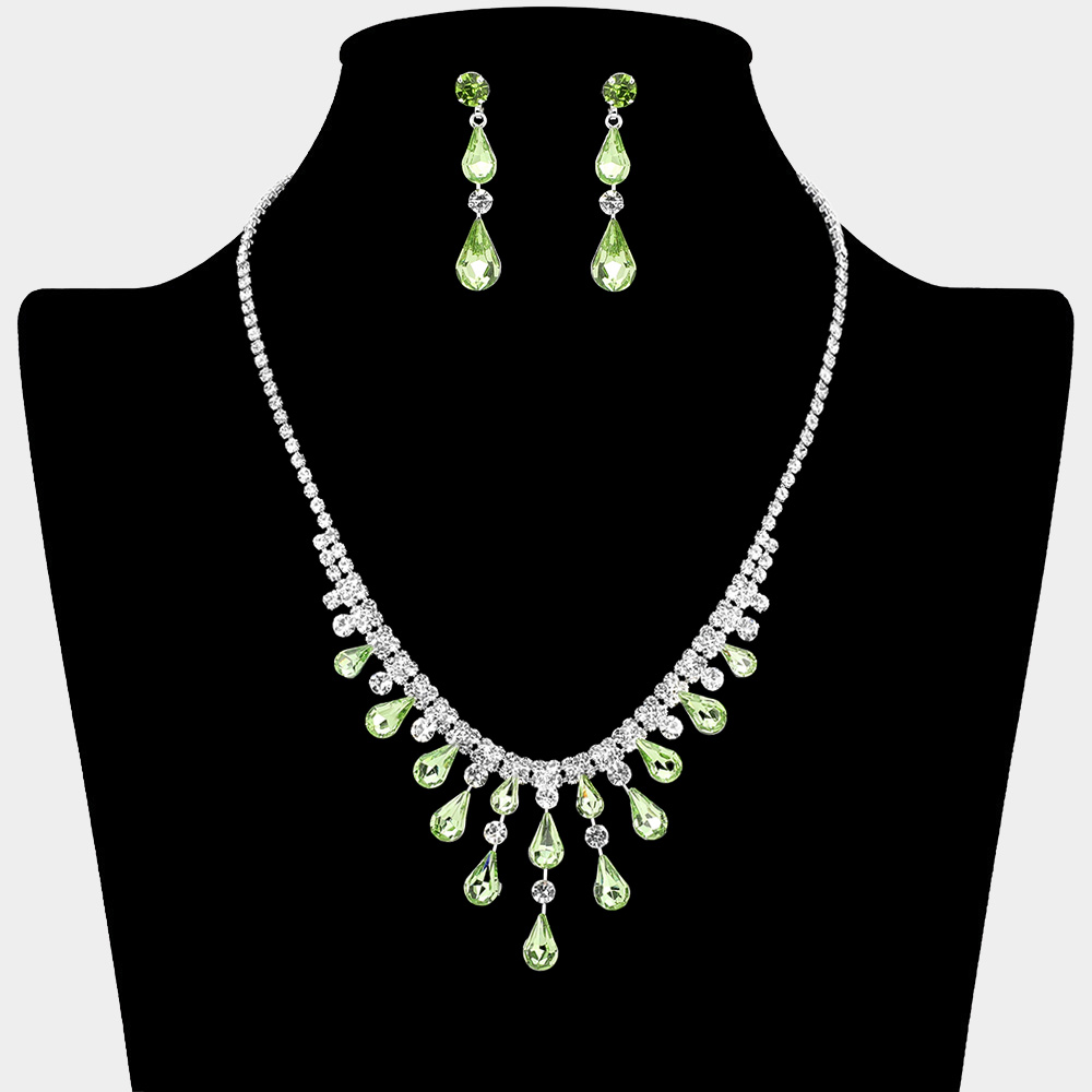 Teardrop Stone Cluster Embellished Rhinestone Paved Necklace