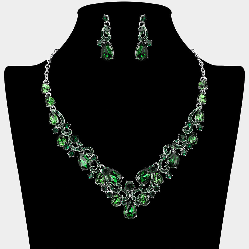 Teardrop Stone Cluster Embellished Rhinestone Paved Necklace