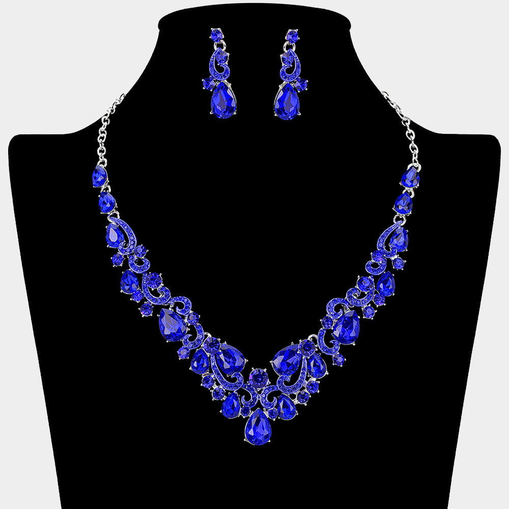 Teardrop Stone Cluster Embellished Rhinestone Paved Necklace