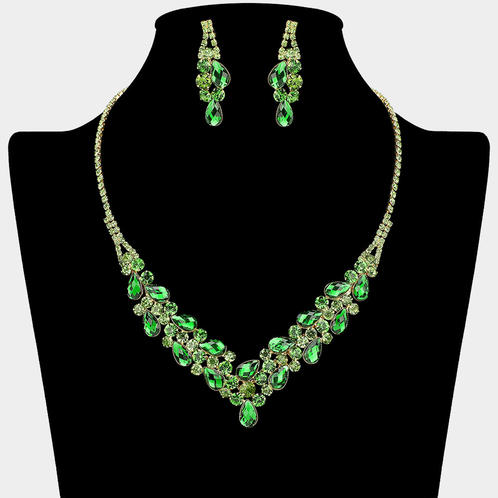 • Elegant jewelry set featuring a rhinestone-encrusted necklace and matching earrings with teardrop-shaped accents. Designed to shine at formal events, weddings, or special evenings, this set adds glamour and sophistication with its detailed sparkle and refined silhouette.