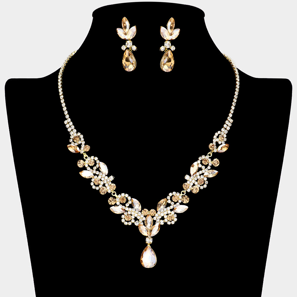Teardrop Stone Cluster Pendant Marquise Stone Cluster Rhinestone Paved Necklace