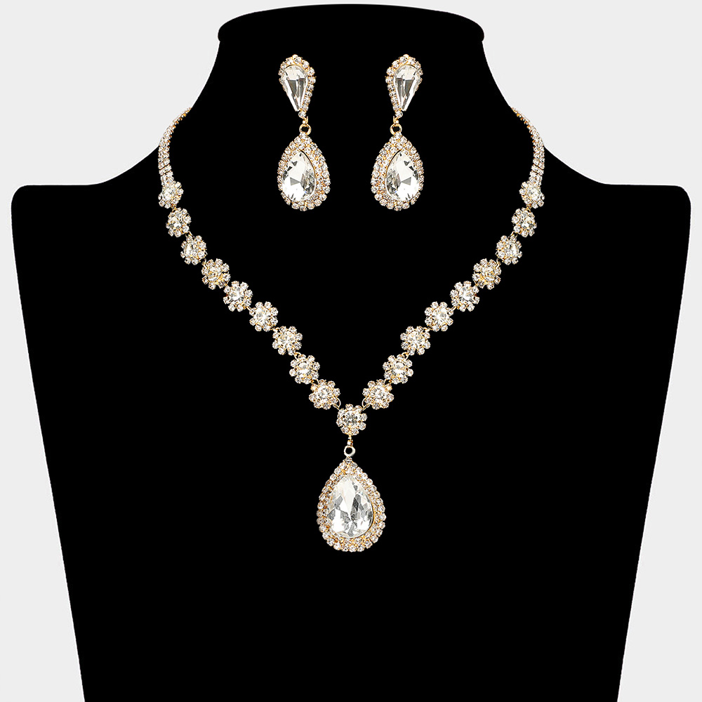 Teardrop Stone Cluster Pointed Round Stone Cluster Rhinestone Paved Necklace