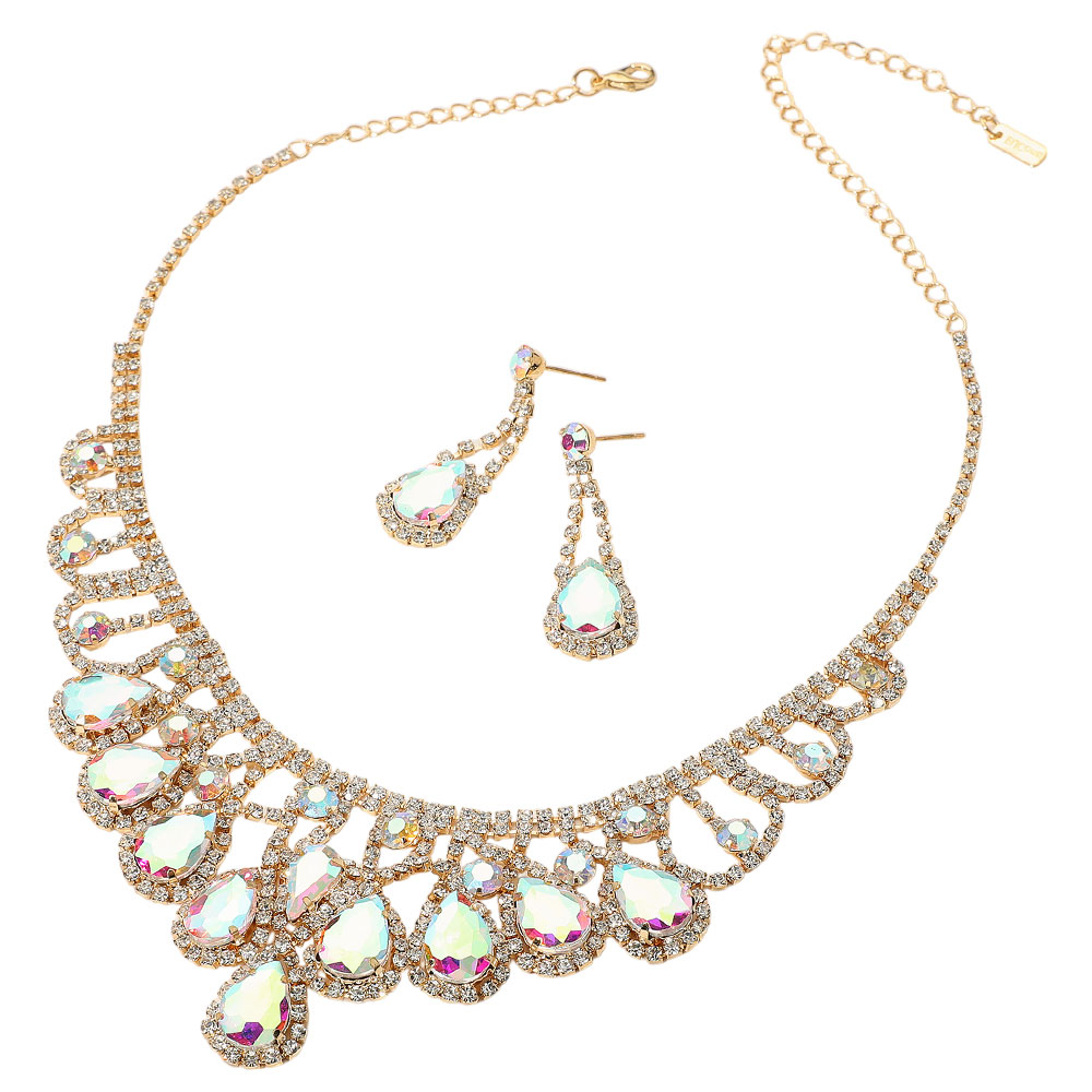 Teardrop Stone Embellished Rhinestone Paved Collar Necklace