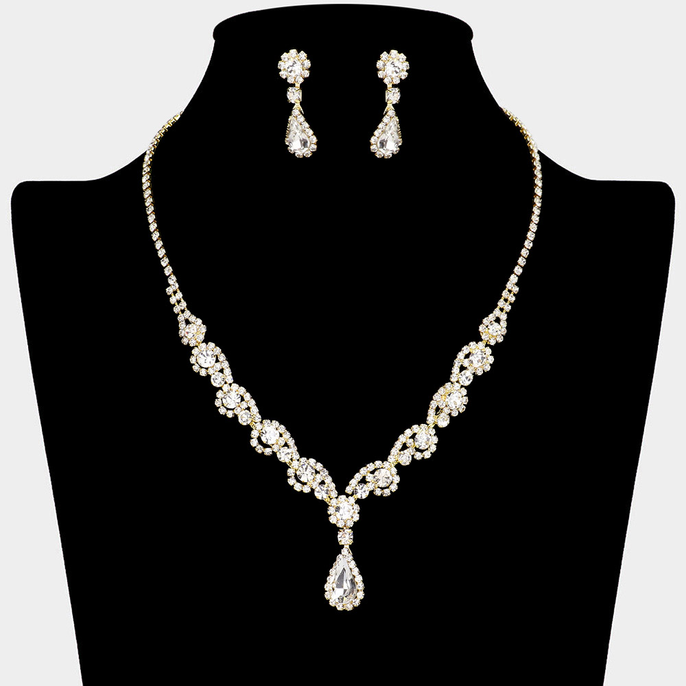 Teardrop Stone Pendant Accented Round Stone Rhinestone Paved Necklace