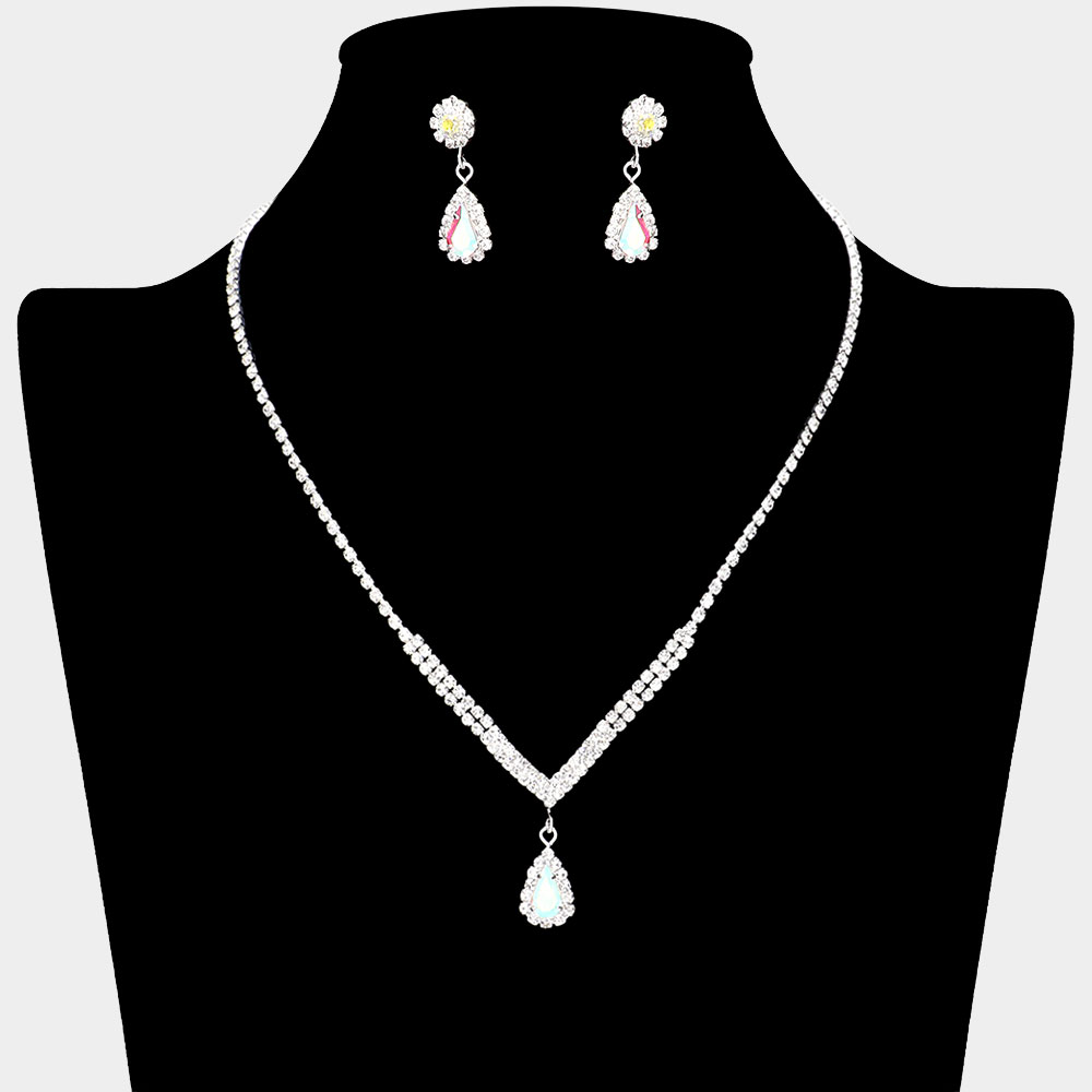 Teardrop Stone Cluster Pendant Pointed Rhinestone Paved Jewelry Set