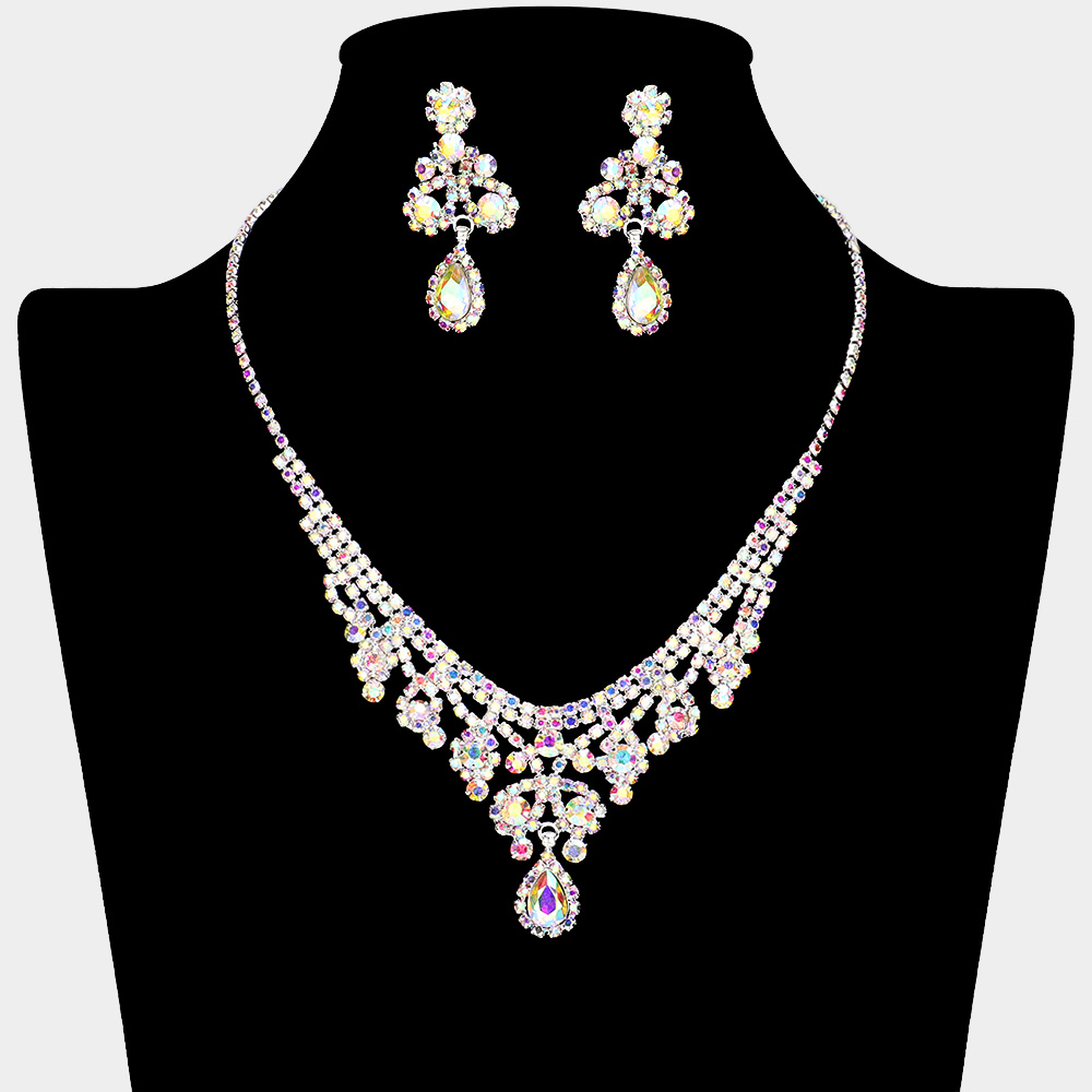 Teardrop Stone Pointed Rhinestone Paved Flower Embellished Necklace