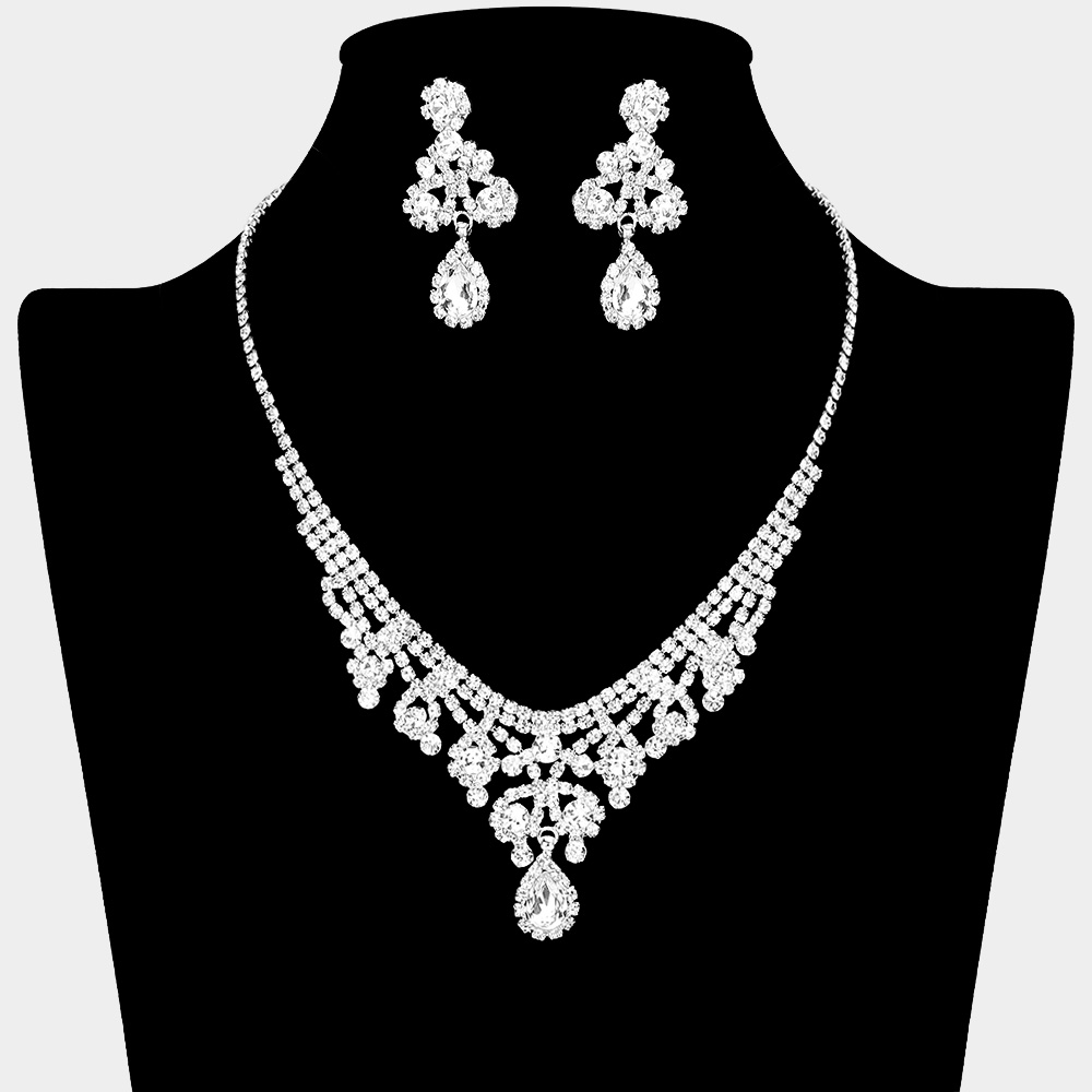 Teardrop Stone Pointed Rhinestone Paved Flower Embellished Necklace