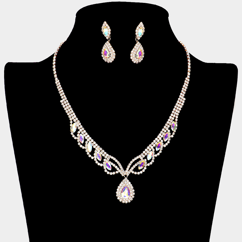 Teardrop Stone Pointed Rhinestone Paved Necklace
