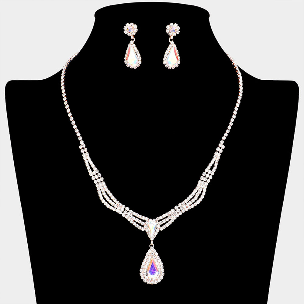 Teardrop Stone Pointed Rhinestone Paved Necklace