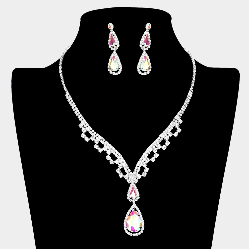 Teardrop Stone Pointed Rhinestone Paved Necklace