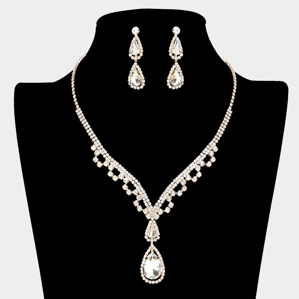 Teardrop Stone Pointed Rhinestone Paved Necklace
