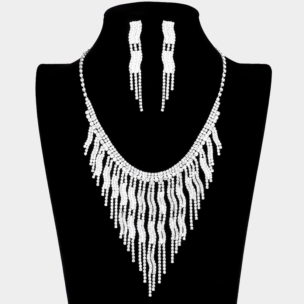 Wavy fringe crystal rhinestone necklace