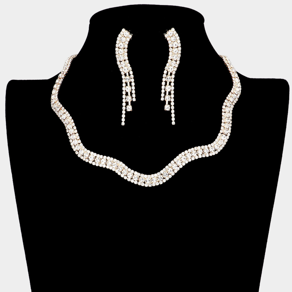 Rhinestone Christmas Flower Collar Evening Necklace Jewelry Set
